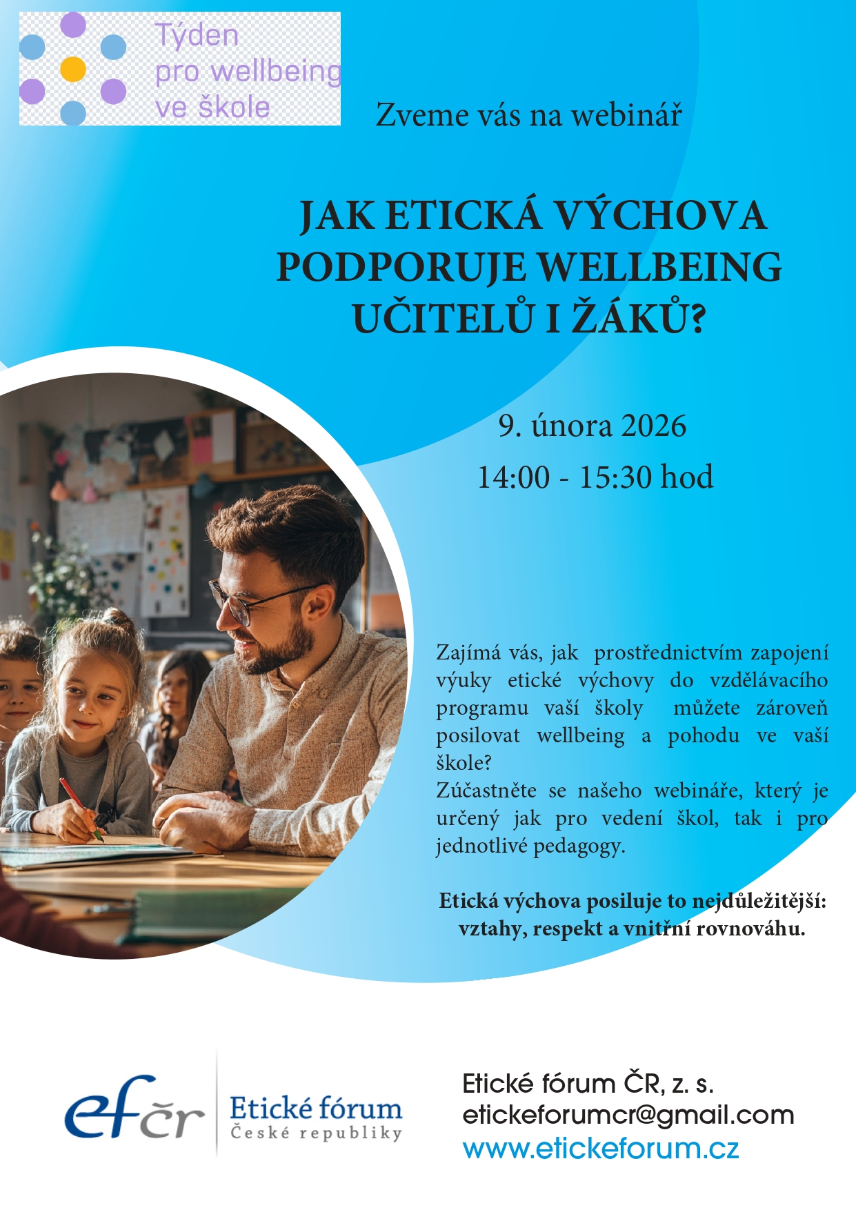 Nositelem iniciativy je Partnerství pro vzdělávání 2030+, z.ú. V letošním roce se koná již třetí ročník. Etické fórum ČR přispěje k povědomí o wellbeingu konáním webináře Jak etická výchova podporuje wellbeing učitelů i žáků?.
