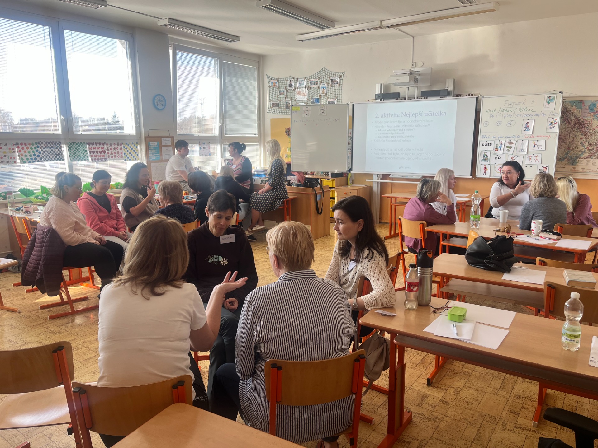 Po hektickém přípravném týdnu pokračujeme ve školení "balíčků". Náš projekt jsme představili zatím ve třinácti školách, v některých z nich pokračujeme navazujícími kurzy. Mimo to, že seznamujeme učitele s projektem Etické výchovy, díky realizaci aktivit etické výchovy se všemi jejich náležitostmi, naše kurzy posilují týmovost sborovny a sbližování učitelů.
