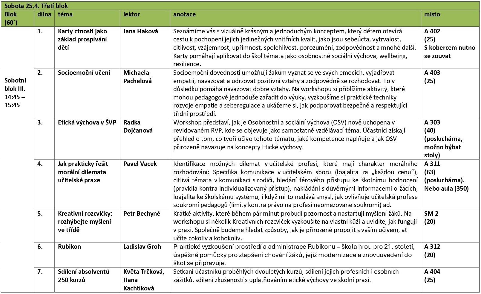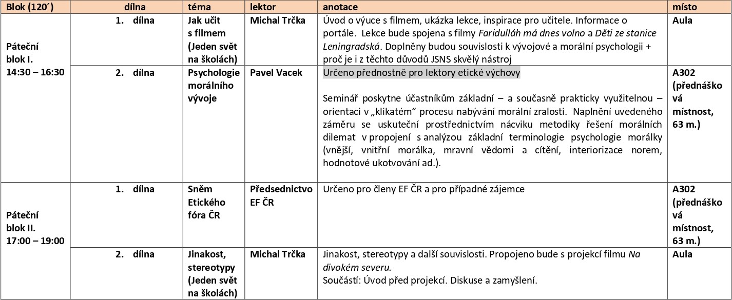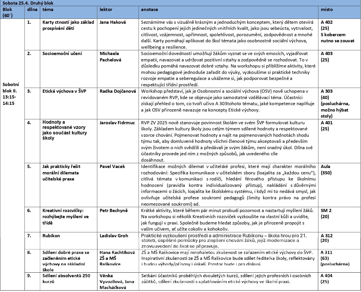 Dílny na konferenci Etická výchova pro svět zítřka